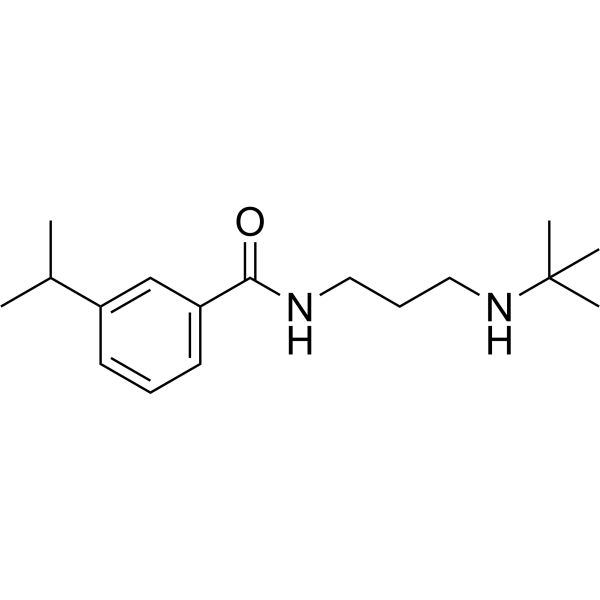 注射用配方1: DMSO : Tween 80: Saline = 10 : 5 : 85 (如: 100 μL DMSO → 50 μL Tween 80 → 850 μL Saline)(IP/IV/IM/SC等) *生理盐水/Saline的制备:将0.9g氯化钠/NaCl溶解在100 mL ddH ₂ O中,得到澄清溶液。 注射用配方 2: DMSO : PEG300 :Tween 80 : Saline = 10 : 40 : 5 : 45 (如: 100 μL DMSO → 400 μL PEG300 → 50 μL Tween 80 → 450 μL Saline) 注射用配方 3: DMSO : Corn oil = 10 : 90 (如: 100 μL DMSO → 900 μL Corn oil) 示例: 以注射用配方 3 (DMSO : Corn oil = 10 : 90) 为例说明, 如果要配制 1 mL 2.5 mg/mL的工作液, 您可以取 100 μL 25 mg/mL 澄清的 DMSO 储备液,加到 900 μL Corn oil/玉米油中, 混合均匀。 View More