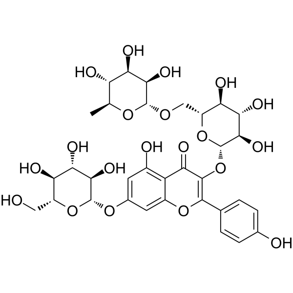 34336-18-0; Kaempferol-3-rhamnoglucoside-7-glucoside; 5-hydroxy-2-(4-hydroxyphenyl)-7-[(3R,4S,5S,6R)-3,4,5-trihydroxy-6-(hydroxymethyl)oxan-2-yl]oxy-3-[(3R,4S,5S,6R)-3,4,5-trihydroxy-6-[(1R,2S,3R,4R)-1,2,3,4-tetrahydroxypentyl]oxan-2-yl]oxychromen-4-one; 5-Hydroxy-2-(4-hydroxyphenyl)-3-(((3R,4S,5S,6R)-3,4,5-trihydroxy-6-((1R,2S,3R,4R)-1,2,3,4-tetrahydroxypentyl)tetrahydro-2H-pyran-2-yl)oxy)-7-(((3R,4S,5S,6R)-3,4,5-trihydroxy-6-(hydroxymethyl)tetrahydro-2H-pyran-2-yl)oxy)-4H-chromen-4-one; E88929; 5-hydroxy-2-(4-hydroxyphenyl)-7-{[(3R,4S,5S,6R)-3,4,5-trihydroxy-6-(hydroxymethyl)oxan-2-yl]oxy}-3-{[(3R,4S,5S,6R)-3,4,5-trihydroxy-6-[(1R,2S,3R,4R)-1,2,3,4-tetrahydroxypentyl]oxan-2-yl]oxy}chromen-4-one