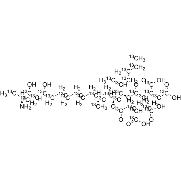 InChI=1S/C34H59NO14/c1-5-6-12-21(3)32(49-31(43)18-24(34(46)47)16-29(40)41)27(48-30(42)17-23(33(44)45)15-28(38)39)14-20(2)11-9-7-8-10-13-25(36)19-26(37)22(4)35/h20-27,32,36-37H,5-19,35H2,1-4H3,(H,38,39)(H,40,41)(H,44,45)(H,46,47)/t20-,21+,22-,23+,24+,25+,26-,27-,32+/m0/s1/i1+1,2+1,3+1,4+1,5+1,6+1,7+1,8+1,9+1,10+1,11+1,12+1,13+1,14+1,15+1,16+1,17+1,18+1,19+1,20+1,21+1,22+1,23+1,24+1,25+1,26+1,27+1,28+1,29+1,30+1,31+1,32+1,33+1,34+1