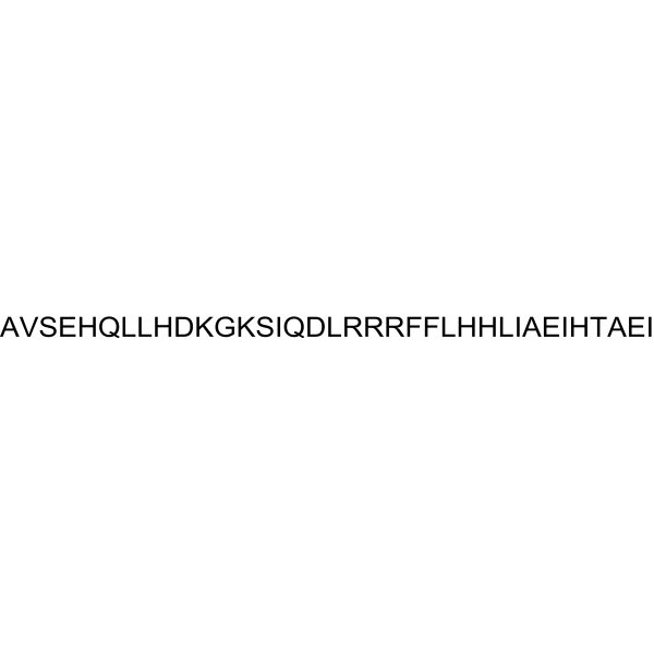人表皮角质形成细胞响应人 PTHrP-(1-36) (EC50: 0.05 nM),表现出细胞内钙增加[2]。人 PTHrP-(1-36)(100 nM,24 小时)刺激人 β 细胞的增殖[3]。在人胰岛中,人 PTHrP-(1-36)(100 nM,30 分钟)可增加胰岛素分泌[3]。在 UMR 106 细胞中,PTHrP-(1-36)(小鼠,EC50:1 nM)快速引起 Ca2+ 反应[4]。