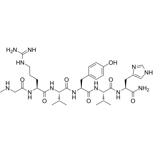 InChI=1S/C34H54N12O7/c1-18(2)27(32(52)43-24(29(35)49)14-21-15-39-17-41-21)46-31(51)25(13-20-8-10-22(47)11-9-20)44-33(53)28(19(3)4)45-30(50)23(42-26(48)16-38-5)7-6-12-40-34(36)37/h8-11,15,17-19,23-25,27-28,38,47H,6-7,12-14,16H2,1-5H3,(H2,35,49)(H,39,41)(H,42,48)(H,43,52)(H,44,53)(H,45,50)(H,46,51)(H4,36,37,40)/t23-,24-,25-,27-,28-/m0/s1