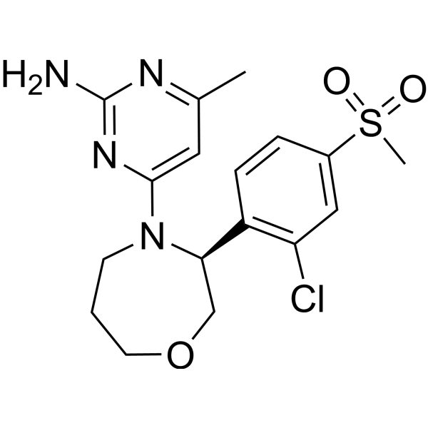 CC1=CC(=NC(=N1)N)N2CCCOC[C@@H]2C3=C(C=C(C=C3)S(=O)(=O)C)Cl