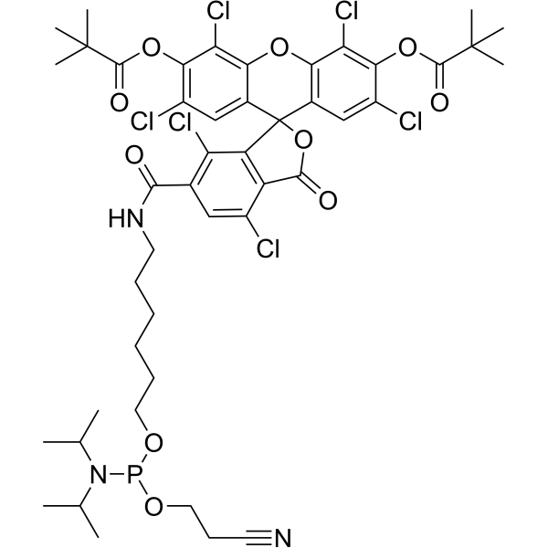 InChI=1S/C46H52Cl6N3O10P/c1-23(2)55(24(3)4)66(61-19-15-16-53)60-18-14-12-11-13-17-54-40(56)25-20-28(47)31-32(33(25)50)46(65-41(31)57)26-21-29(48)38(63-42(58)44(5,6)7)34(51)36(26)62-37-27(46)22-30(49)39(35(37)52)64-43(59)45(8,9)10/h20-24H,11-15,17-19H2,1-10H3,(H,54,56)