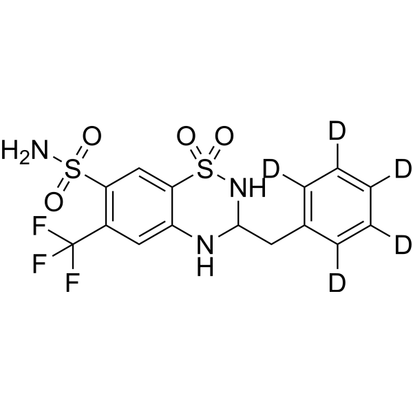 InChI=1S/C15H14F3N3O4S2/c16-15(17,18)10-7-11-13(8-12(10)26(19,22)23)27(24,25)21-14(20-11)6-9-4-2-1-3-5-9/h1-5,7-8,14,20-21H,6H2,(H2,19,22,23)/i1D,2D,3D,4D,5D