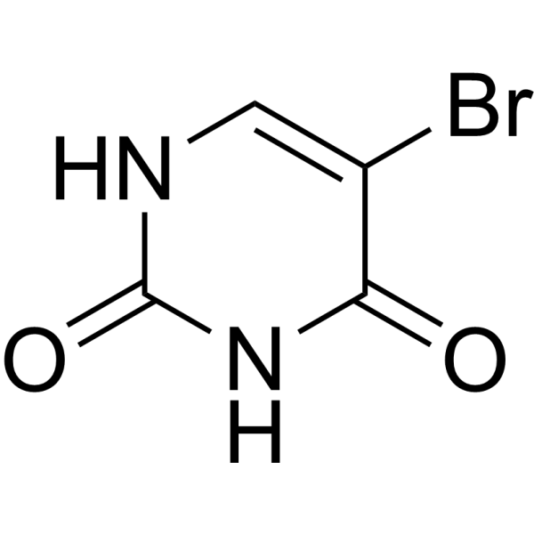 胸苷磷酸化酶是一种嘧啶补救酶,可将5-溴尿嘧啶转化为5-溴脱氧尿苷,后者是胸苷的诱变类似物。最终,5-溴尿嘧啶作用于DNA,通过碱基替换诱导随机DNA点突变。经过若干次复制循环后,碱基对会从AT变为GC,或从GC变为AT,具体取决于5-溴尿嘧啶是在DNA分子内部,还是以烯醇化或电离形式作为外来碱基进入DNA分子。5-溴尿嘧啶通常与腺嘌呤配对。然而,由于溴原子的电负性比C-5位上的甲基更强,因此5-溴尿嘧啶烯醇互变异构体的比例高于胸腺嘧啶。因此,5-溴尿嘧啶的掺入尤其可能导致后续DNA复制过程中碱基配对的改变。 毒性数据 LD50:1700 mg/kg(大鼠,腹腔注射);LD50:1400 mg/kg(小鼠,腹腔注射)(T14) 相互作用 在细菌培养基中加入5-溴尿嘧啶(BU)以及5-溴-2-脱氧尿苷(BUdR)会导致细菌对紫外线的敏感性显著增加。核酸碱基类似物8-氮杂腺嘌呤(8-AA)也观察到了类似的效果,但不如BU显著。本文报道的实验研究了BU或BUdR与8-AA联合作用对大肠杆菌、奇异变形杆菌、枯草芽孢杆菌和蜡样芽孢杆菌的影响。如果在培养过程中额外添加 8-AA,BUdR 的致敏作用不会增强。相反,致敏作用会降低。这一结果可能是由于腺嘌呤衍生物对紫外线照射的保护作用所致,前提是该衍生物存在于细胞中但未整合到 DNA 中。 切伦科夫辐射和电离辐射对大肠杆菌 AB2487 recA 造成的损伤以累加的方式增加其致死率,而非协同作用。溴尿嘧啶取代通过增强放射敏感性和光敏感性的机制增强高能 X 射线对大肠杆菌 AB2487 recA 的致死作用。 非人类毒性值 小鼠腹腔注射 LD50 1400 mg/kg 大鼠腹腔注射 LD50 1700 mg/kg |