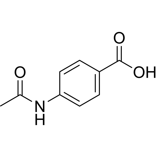 4-乙酰氨基苯甲酸是一种氨基苯甲酸,由苯甲酸在4位连接一个乙酰氨基取代基构成。它与4-氨基苯甲酸功能相关,是4-乙酰氨基苯甲酸酯的共轭酸。 已有报道称在Baeospora myosura中发现了4-乙酰氨基苯甲酸,并有相关数据。 |