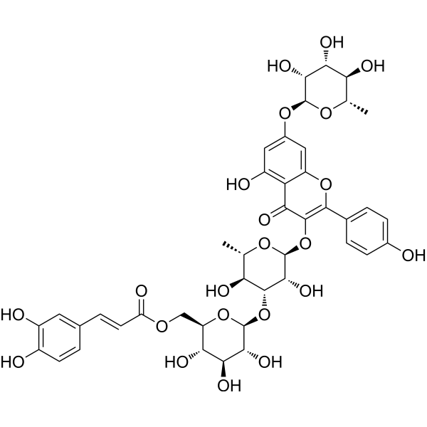 C[C@H]1[C@@H]([C@H]([C@H]([C@@H](O1)OC2=CC(=C3C(=C2)OC(=C(C3=O)O[C@H]4[C@@H]([C@@H]([C@H]([C@@H](O4)C)O)O[C@H]5[C@@H]([C@H]([C@@H]([C@H](O5)COC(=O)/C=C/C6=CC(=C(C=C6)O)O)O)O)O)O)C7=CC=C(C=C7)O)O)O)O)O
