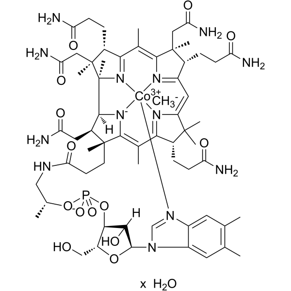 甲基钴胺素是维生素B12的合成和活性形式,可以穿过血脑屏障而不进行生物转化,可用于治疗或预防维生素B12缺乏症及其并发症。服用后,甲钴胺素能够替代内源性维生素B12,增加维生素B12水平,改善维生素B12缺乏症。维生素B12是造血、神经代谢、DNA和RNA生成、碳水化合物、脂肪和蛋白质代谢所必需的。它改善铁在代谢循环中的功能,并协助胆碱合成中的叶酸。它的代谢与叶酸的代谢是相互联系的。