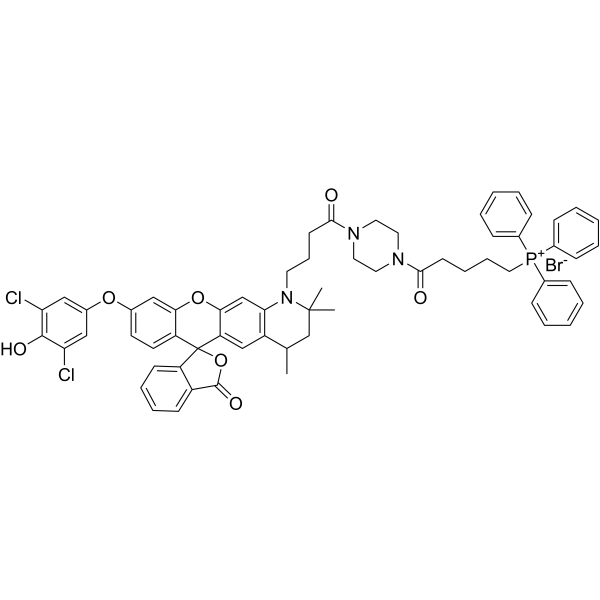 O=C1C2=CC=CC=C2C2(C3=CC=C(OC4C=C(Cl)C(O)=C(Cl)C=4)C=C3OC3=CC4N(C(C)(C)CC(C)C=4C=C23)CCCC(N2CCN(C(=O)CCCC[P+](C3C=CC=CC=3)(C3C=CC=CC=3)C3C=CC=CC=3)CC2)=O)O1.[Br-]