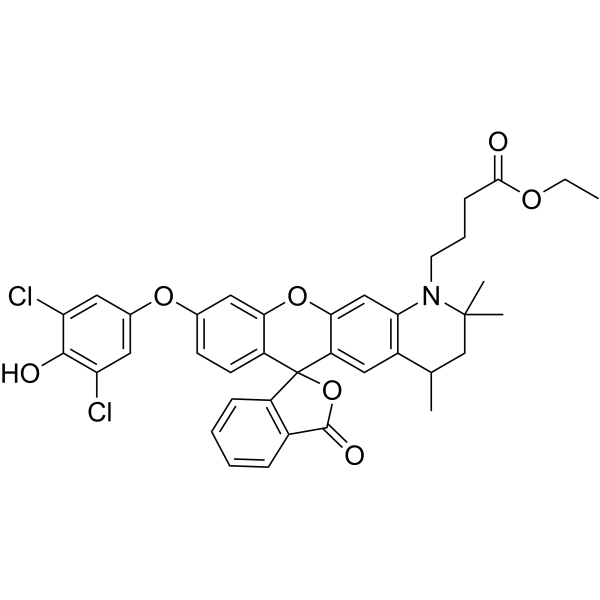 N1(CCCC(OCC)=O)C2=C(C=C3C4(C5=C(C=CC=C5)C(=O)O4)C4=CC=C(OC5=CC(Cl)=C(O)C(Cl)=C5)C=C4OC3=C2)C(C)CC1(C)C