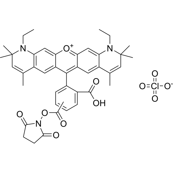[Cl+3]([O-])([O-])([O-])[O-].O1C2C=C3C(=CC=2C(C2C=C(C(=O)ON4C(CCC4=O)=O)C=CC=2C(=O)O)=C2C=C4C(C)=CC(C)(C)[N+](CC)=C4C=C12)C(C)=CC(C)(C)N3CC