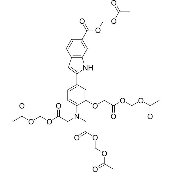 CC(COCOC(CN(C1C=CC(C2=CC3C=CC(=CC=3N2)C(OCOC(=O)C)=O)=CC=1)CC(OCOCC(=O)C)=O)=O)=O
