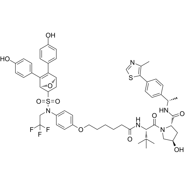 [1]. Xie B, et.al. Discovery of a Novel Class of PROTACs as Potent and Selective Estrogen Receptor α Degraders to Overcome Endocrine-Resistant Breast Cancer In Vitro and In Vivo. J Med Chem. 2023 May 25;66(10):6631-6651.