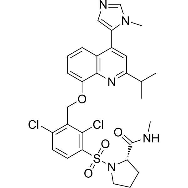 (2S)-1-[2,4-dichloro-3-[[4-(3-methylimidazol-4-yl)-2-propan-2-ylquinolin-8-yl]oxymethyl]phenyl]sulfonyl-N-methylpyrrolidine-2-carboxamide