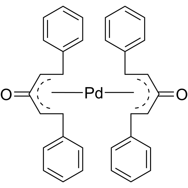 双(1,5-二苯基-1,4-戊二烯-3-酮)钯(O)是钯的化合物。钯是一种化学元素,化学符号为Pd,原子序数为46。它以单质金属的形式存在,也与金和其他铂族金属形成合金,还存在于稀有矿物铜矿和极化矿中。(L794)