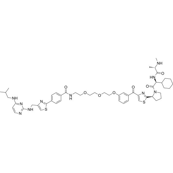 C[C@@H](C(=O)N[C@@H](C1CCCCC1)C(=O)N2CCC[C@H]2C3=NC(=CS3)C(=O)C4=CC(=CC=C4)OCCOCCOCCNC(=O)C5=CC=C(C=C5)C6=NC(=CS6)CNC7=NC=CC(=N7)NCC(C)C)NC
