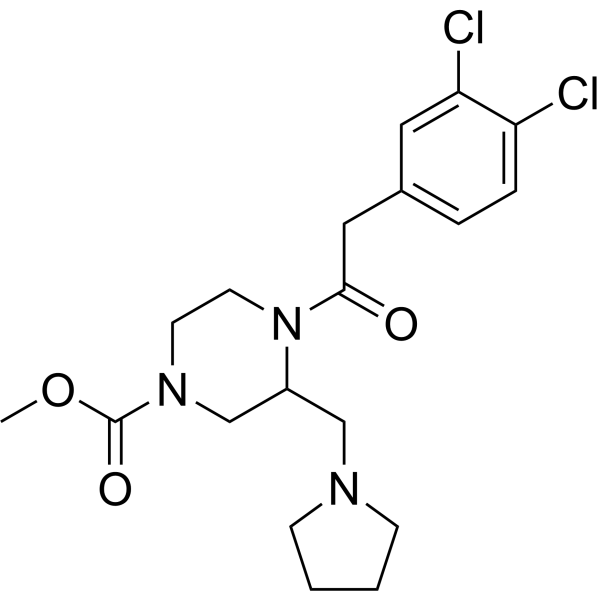 InChI=1S/C19H25Cl2N3O3/c1-27-19(26)23-8-9-24(15(13-23)12-22-6-2-3-7-22)18(25)11-14-4-5-16(20)17(21)10-14/h4-5,10,15H,2-3,6-9,11-13H2,1H3