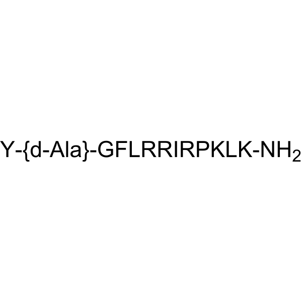 注射用配方1: DMSO : Tween 80: Saline = 10 : 5 : 85 (如: 100 μL DMSO → 50 μL Tween 80 → 850 μL Saline)(IP/IV/IM/SC等) *生理盐水/Saline的制备:将0.9g氯化钠/NaCl溶解在100 mL ddH ₂ O中,得到澄清溶液。 注射用配方 2: DMSO : PEG300 :Tween 80 : Saline = 10 : 40 : 5 : 45 (如: 100 μL DMSO → 400 μL PEG300 → 50 μL Tween 80 → 450 μL Saline) 注射用配方 3: DMSO : Corn oil = 10 : 90 (如: 100 μL DMSO → 900 μL Corn oil) 示例: 以注射用配方 3 (DMSO : Corn oil = 10 : 90) 为例说明, 如果要配制 1 mL 2.5 mg/mL的工作液, 您可以取 100 μL 25 mg/mL 澄清的 DMSO 储备液,加到 900 μL Corn oil/玉米油中, 混合均匀。 View More
