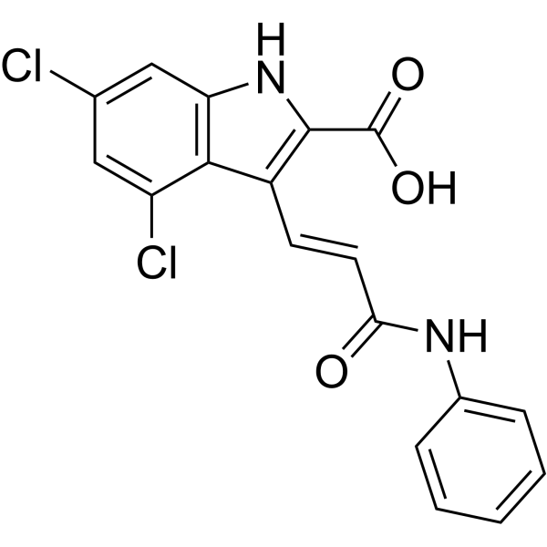 C1=CC=C(C=C1)NC(=O)/C=C/C2=C(NC3=C2C(=CC(=C3)Cl)Cl)C(=O)O