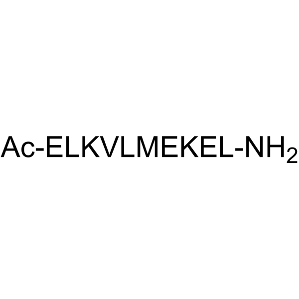 在体内,PDAC 细胞的 RAGE 介导的基础 NFκB 活性被 RAGE 拮抗肽(RAP,100 µg)抑制[1]。 RAGE 拮抗肽 (RAP) 抑制神经胶质瘤的生长并减少胰腺癌的生长和扩散[1]。 RAGE 拮抗肽(RAP;4 mg/kg;腹腔注射)可减弱哮喘小鼠的杯状细胞化生、气道炎症和气道反应性,同时还能减少 Th2 细胞因子的分泌。此外,RAGE 拮抗肽可降低细胞质、细胞核和全身中的 β-连环蛋白水平。它还增加 Ser33/37/Thr41 处的 β-连环蛋白磷酸化,从而导致泛素化,下调 β-连环蛋白靶向基因的表达,并将 β-连环蛋白保留在细胞膜上,将其从主动信号传导模式转变为粘附功能[2]。