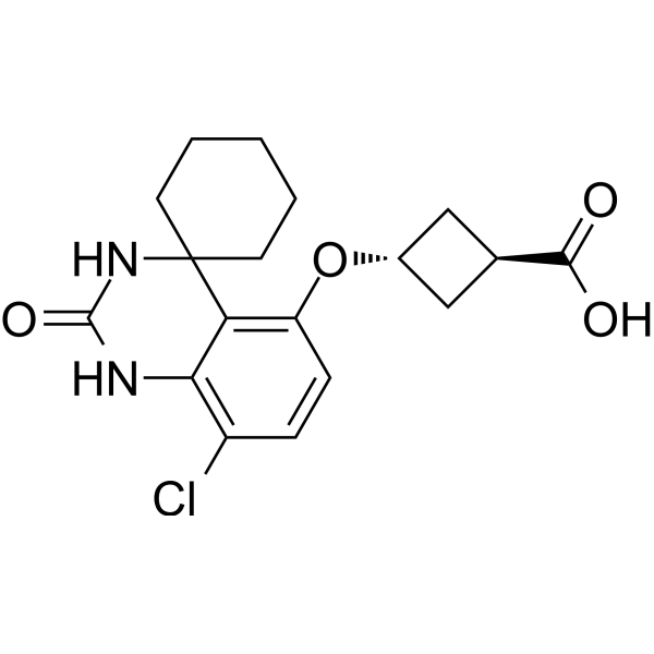 ClC1=CC=C(C2=C1NC(NC12CCCCC1)=O)OC1CC(C(=O)O)C1