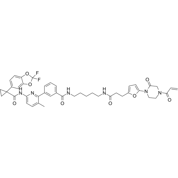 NJH-2-057; 2858812-70-9; CHEMBL5208354; SCHEMBL27163877; 3-[6-[[1-(2,2-difluoro-1,3-benzodioxol-5-yl)cyclopropanecarbonyl]amino]-3-methylpyridin-2-yl]-N-[5-[3-[5-(2-oxo-4-prop-2-enoylpiperazin-1-yl)furan-2-yl]propanoylamino]pentyl]benzamide;