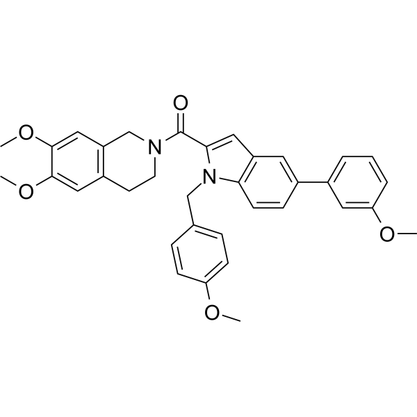 口服配方 3: 溶解于 PEG400 (聚乙二醇400) 请根据您的实验动物和给药方式选择适当的溶解配方/方案: 1、请先配制澄清的储备液(如:用DMSO配置50 或 100 mg/mL母液(储备液)); 2、取适量母液,按从左到右的顺序依次添加助溶剂,澄清后再加入下一助溶剂。以 下列配方为例说明 (注意此配方只用于说明,并不一定代表此产品 的实际溶解配方): 10% DMSO → 40% PEG300 → 5% Tween-80 → 45% ddH2O (或 saline); 假设最终工作液的体积为 1 mL, 浓度为5 mg/mL: 取 100 μL 50 mg/mL 的澄清 DMSO 储备液加到 400 μL PEG300 中,混合均匀/澄清;向上述体系中加入50 μL Tween-80,混合均匀/澄清;然后继续加入450 μL ddH2O (或 saline)定容至 1 mL; 3、溶剂前显示的百分比是指该溶剂在最终溶液/工作液中的体积所占比例; 4、 如产品在配制过程中出现沉淀/析出,可通过加热(≤50℃)或超声的方式助溶; 5、为保证最佳实验结果,工作液请现配现用! 6、如不确定怎么将母液配置成体内动物实验的工作液,请查看说明书或联系我们; 7、 以上所有助溶剂都可在 Invivochem.cn网站购买。 |