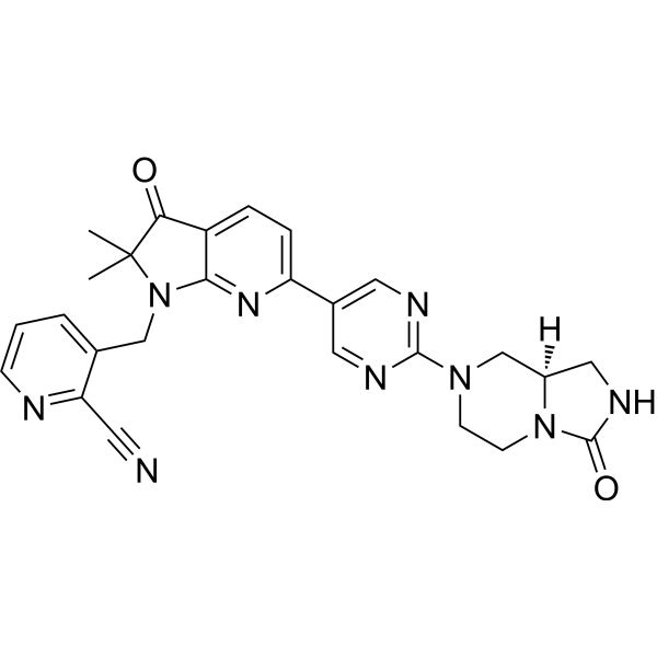 C1(C#N)=NC=CC=C1CN1C2=NC(C3=CN=C(N4CCN5C(=O)NC[C@]5([H])C4)N=C3)=CC=C2C(=O)C1(C)C