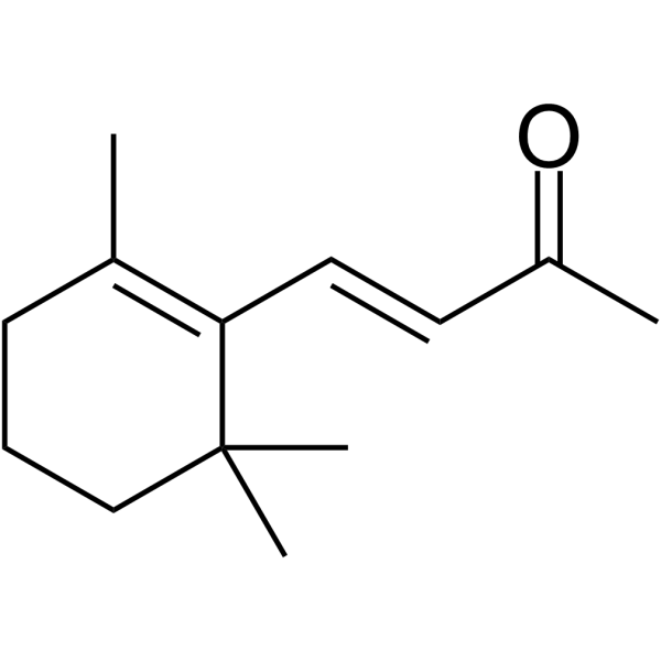 β-紫罗兰酮是 β-类胡萝卜素的近亲,存在于多种水果和蔬菜中[1]。 25、50、100 和 200 μM 的 β-紫罗兰酮在 24 和 48 小时内可抑制 SGC-7901 细胞系的增殖。 89 μM 是测得的 IC50 值[1]。