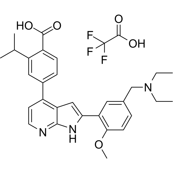 在肝脏侵袭和发育测定中,TCMDC-135051 TFA 对伯氏疟原虫子孢子具有很强的作用,pEC50 值为 6.17 (EC50=0.40 μM) [1]。根据使用重组 PvCLK3 (P. vivax) 和 PbCLK3 (P. berghei) 的激酶测试,TCMDC-135051 TFA 对这两种直系同源物具有近乎等价的抑制作用,pIC50 值为 7.47 (IC50=0.033 μM) 和 7.86 (IC50= 0.013 μM),分别[1]。