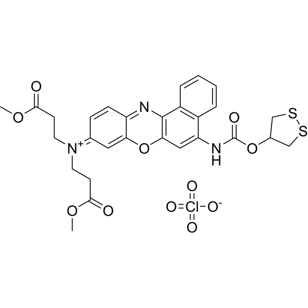 在活 HeLa 细胞中,TRFS-red(1 μM;30-120 分钟)产生红色荧光信号,大部分红色荧光发生在细胞质中[1]。在 TEBU 中,TRFS-red (10 μM) 在约 530 nm(pH 7.4)处具有最大吸收,在 50 mM Tris-HCl 和 1 mM EDTA 中[1]。 TRFS-red 在 5.5–8.5 的 pH 范围内显示可靠的荧光信号[1]。