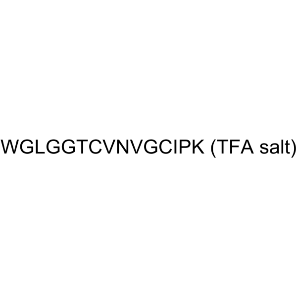 例如,若需制备1 mL的工作液,可将100 μL 25.0 mg/mL澄清DMSO储备液加入到400 μL PEG300中,混匀;然后向上述溶液中加入50 μL Tween-80,混匀;加入450 μL生理盐水定容至1 mL。 *生理盐水的制备:将 0.9 g 氯化钠溶解在 100 mL ddH₂O中,得到澄清溶液。 配方 2 中的溶解度: ≥ 2.5 mg/mL (1.55 mM) (饱和度未知) in 10% DMSO + 90% (20% SBE-β-CD in Saline) (这些助溶剂从左到右依次添加,逐一添加), 澄清溶液。 例如,若需制备1 mL的工作液,可将 100 μL 25.0 mg/mL澄清DMSO储备液加入900 μL 20% SBE-β-CD生理盐水溶液中,混匀。 *20% SBE-β-CD 生理盐水溶液的制备(4°C,1 周):将 2 g SBE-β-CD 溶解于 10 mL 生理盐水中,得到澄清溶液。 View More