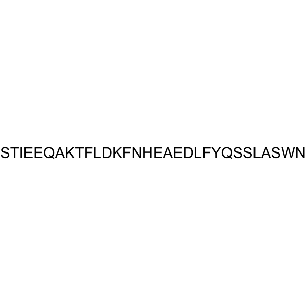 注射用配方1: DMSO : Tween 80: Saline = 10 : 5 : 85 (如: 100 μL DMSO → 50 μL Tween 80 → 850 μL Saline)(IP/IV/IM/SC等) *生理盐水/Saline的制备:将0.9g氯化钠/NaCl溶解在100 mL ddH ₂ O中,得到澄清溶液。 注射用配方 2: DMSO : PEG300 :Tween 80 : Saline = 10 : 40 : 5 : 45 (如: 100 μL DMSO → 400 μL PEG300 → 50 μL Tween 80 → 450 μL Saline) 注射用配方 3: DMSO : Corn oil = 10 : 90 (如: 100 μL DMSO → 900 μL Corn oil) 示例: 以注射用配方 3 (DMSO : Corn oil = 10 : 90) 为例说明, 如果要配制 1 mL 2.5 mg/mL的工作液, 您可以取 100 μL 25 mg/mL 澄清的 DMSO 储备液,加到 900 μL Corn oil/玉米油中, 混合均匀。 View More