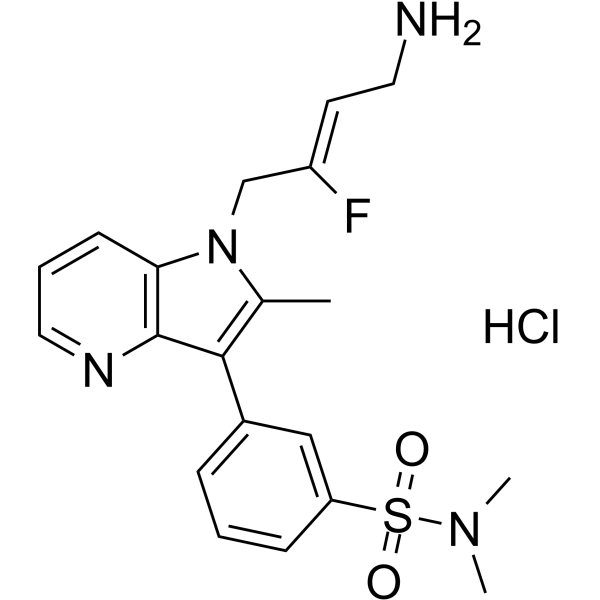 对于 LOXL2,PXS-5153A 单盐酸盐在所有测试的哺乳动物物种中的 IC50 均低于 40 nM。 PXS-5153A 单盐酸盐的 IC50 为 63 nM,还抑制人 LOXL3。 PXS-5153A 单盐酸盐对 LOXL2 的选择性比其他同类胺氧化酶高 700 倍以上,比 LOX 和 LOXL1 高 40 倍以上。速效抑制剂 PXS-5153A 单盐酸盐在 15 分钟内几乎完全阻断酶活性 [1]。