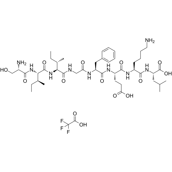 注射用配方1: DMSO : Tween 80: Saline = 10 : 5 : 85 (如: 100 μL DMSO → 50 μL Tween 80 → 850 μL Saline)(IP/IV/IM/SC等) *生理盐水/Saline的制备:将0.9g氯化钠/NaCl溶解在100 mL ddH ₂ O中,得到澄清溶液。 注射用配方 2: DMSO : PEG300 :Tween 80 : Saline = 10 : 40 : 5 : 45 (如: 100 μL DMSO → 400 μL PEG300 → 50 μL Tween 80 → 450 μL Saline) 注射用配方 3: DMSO : Corn oil = 10 : 90 (如: 100 μL DMSO → 900 μL Corn oil) 示例: 以注射用配方 3 (DMSO : Corn oil = 10 : 90) 为例说明, 如果要配制 1 mL 2.5 mg/mL的工作液, 您可以取 100 μL 25 mg/mL 澄清的 DMSO 储备液,加到 900 μL Corn oil/玉米油中, 混合均匀。 View More