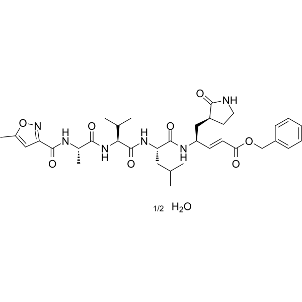 Mpro 抑制剂 N3 半水合物 (0-0.64 μM) 能够进入细胞并阻止 IBV 病毒复制,可能在胚胎感染的初始阶段 [3]。