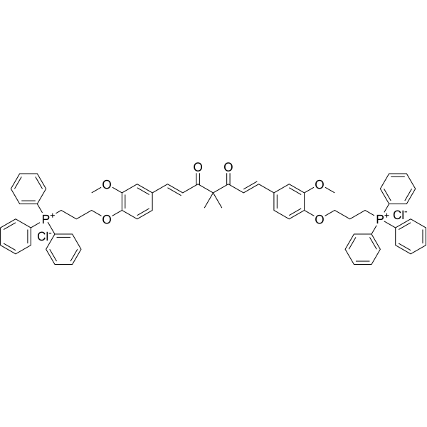 MitoCur-1 对 HepG2 和 L02 细胞表现出特异性细胞毒性,其 IC50 值分别为 1.4 μM 和 9.1 μM [1]。 MitoCur-1(10 μM;12 小时)会导致 HepG2 细胞选择性 GSH 消耗和 ROS 产生[1]。 MitoCur-1(10 μM;24 小时)抑制细胞周期蛋白的表达并停止细胞周期的 G0/G1 期 [1]。