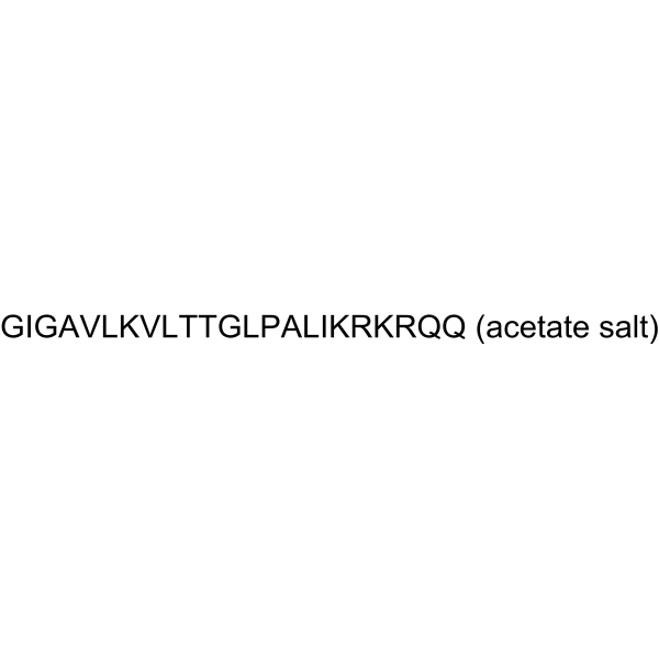 MDP1 醋酸盐对金黄色葡萄球菌、大肠杆菌和铜绿假单胞菌具有增强的抗菌功效。 MDP1 的 MIC 几何平均值依次为:金黄色葡萄球菌为 4.06 μg/mL,大肠杆菌为 1.22 μg/mL,铜绿假单胞菌为 3.75 μg/mL[1]。使用 DNA、钙黄绿素释放和流式细胞术进行的测定表明,对受 MDP1(10、5、2.5、1.25、0.625 和 0.312 μg/mL)乙酸盐影响的测试细菌具有时间依赖性抗菌活性。最终,SEM 分析证明了 MDP1 乙酸盐如何通过引起囊泡或孔发育和细胞裂解,以剂量和时间依赖性方式影响金黄色葡萄球菌和大肠杆菌[1]。