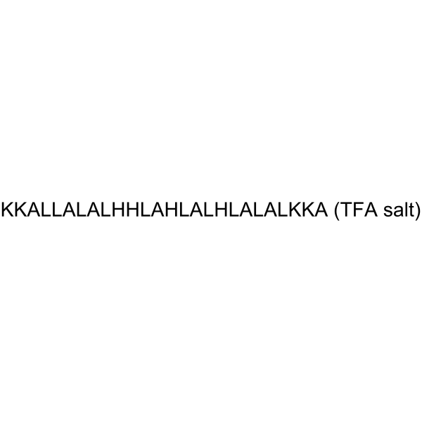 LAH4 TFA 能够复合 DNA,与细胞表面膜结合,并且当封装在内涵体中时,当 pH 值下降时会导致内涵体膜破裂[1]。 LAH4 TFA 对质粒 DNA 表现出强大的转染能力。属于 LAH4 家族的肽可以在体外用 siRNA 有效处理人类细胞系 [2]。通过涉及内体酸化和蛋白酶体途径加工的机制,LAH4 TFA被发现可以介导蛋白质和核苷酸货物的细胞内递送。这促进了蛋白质内化,并导致树突状细胞向 CD8+ T 细胞增强蛋白质抗原的交叉呈递。此外,LAH4 TFA 增强 CpG 内化,从而导致 NF-kB 激活并放大 CpG 的佐剂作用 [3]。枯草芽孢杆菌和大肠杆菌对 LAH4 TFA 的抗菌特性具有耐药性。然而,在杀菌剂量下,该肽不会裂解人红细胞。当比较 pH 5 和 pH 7.5 时,LAH4 TFA 的抗菌活性要明显两个数量级[4]。