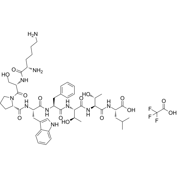 KSPWFTTL TFA 由逆转录病毒 p15 TM 包膜蛋白产生。用 KSPWFTTL TFA 肽脉冲后,溶细胞性 T 淋巴细胞 (CTL) 不敏感变异 cl.18-5 克隆系变得容易被抗病毒 CTL 裂解[2]。