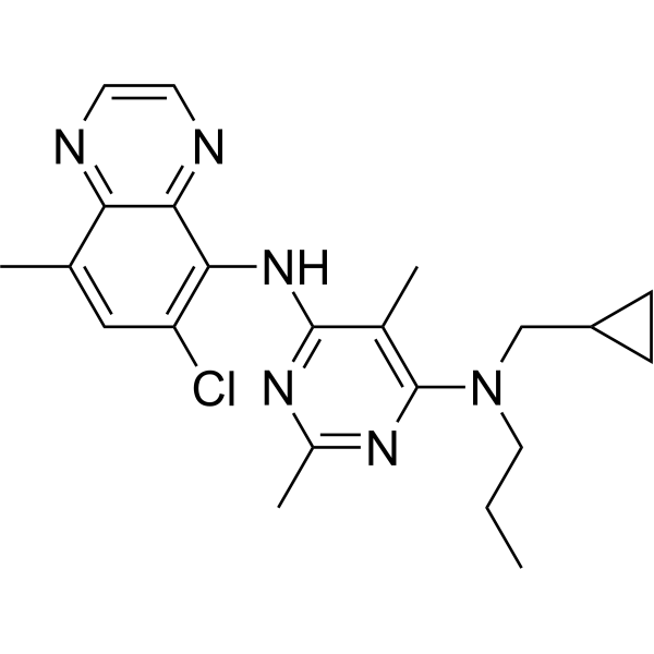 口服配方 1: 悬浮于0.5% CMC Na (羧甲基纤维素钠) 口服配方 2: 悬浮于0.5% Carboxymethyl cellulose (羧甲基纤维素) 示例: 以口服配方 1 (悬浮于 0.5% CMC Na)为例说明, 如果要配制 100 mL 2.5 mg/mL 的工作液, 您可以先取0.5g CMC Na并将其溶解于100mL ddH2O中,得到0.5%CMC-Na澄清溶液;然后将250 mg待测化合物加到100 mL前述 0.5%CMC Na溶液中,得到悬浮液。 View More