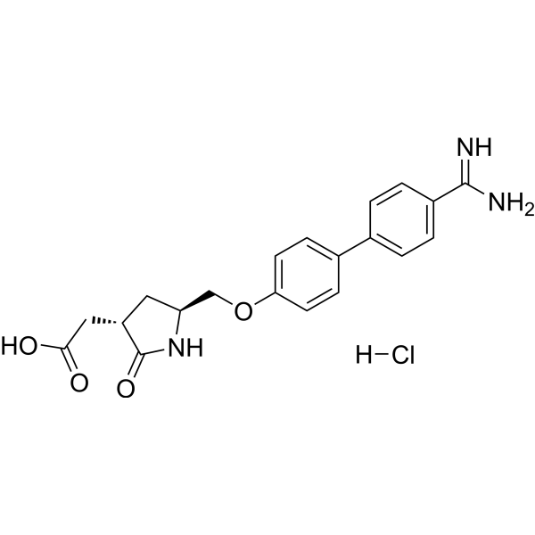 精氨酸-甘氨酸-天冬氨酸识别序列由非肽模拟物盐酸弗拉扎非班模拟。盐酸法拉非班在体外成功抑制人血小板聚集,其与人血小板 GP IIb/IIIa 复合物具有很强的亲和力和选择性。人血小板 GP IIb/IIIa 复合物以 148 nM 的 Kd 与 Farracafiban 盐酸盐可逆结合 [1]。