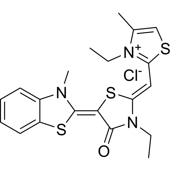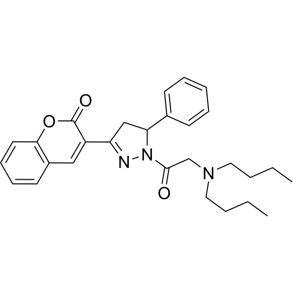 例如,若需制备1 mL的工作液,可将100 μL 20.8 mg/mL澄清DMSO储备液加入400 μL PEG300中,混匀;然后向上述溶液中加入50 μL Tween-80,混匀;加入450 μL生理盐水定容至1 mL。 *生理盐水的制备:将 0.9 g 氯化钠溶解在 100 mL ddH₂O中,得到澄清溶液。 配方 2 中的溶解度: ≥ 2.08 mg/mL (4.12 mM) (饱和度未知) in 10% DMSO + 90% (20% SBE-β-CD in Saline) (这些助溶剂从左到右依次添加,逐一添加), 澄清溶液。 例如,若需制备1 mL的工作液,可将 100 μL 20.8 mg/mL澄清DMSO储备液加入900 μL 20% SBE-β-CD生理盐水溶液中,混匀。 *20% SBE-β-CD 生理盐水溶液的制备(4°C,1 周):将 2 g SBE-β-CD 溶解于 10 mL 生理盐水中,得到澄清溶液。 View More
