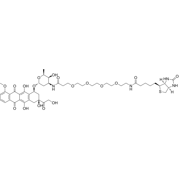 在 U2OS 细胞中,Dox-btn2(1 μM;6 小时;Exc=531/40 nm,Emi=593/40 nm)是可见的,有助于绘制与染色质蛋白和 DNA 的原位相互作用图谱 [1]。