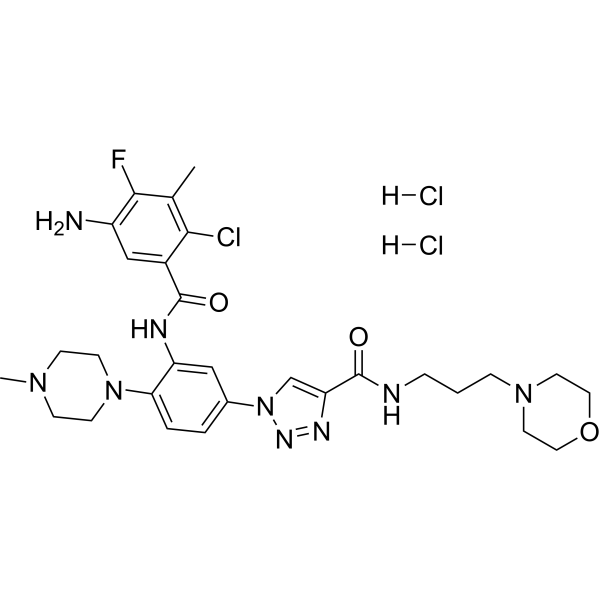 DDO-2093 二盐酸盐(20–80 mg/kg;腹腔注射;每隔一天,持续 21 天)可显着且剂量依赖性地减少肿瘤的大小和重量[1]。