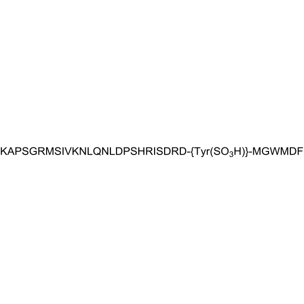 注射用配方1: DMSO : Tween 80: Saline = 10 : 5 : 85 (如: 100 μL DMSO → 50 μL Tween 80 → 850 μL Saline)(IP/IV/IM/SC等) *生理盐水/Saline的制备:将0.9g氯化钠/NaCl溶解在100 mL ddH ₂ O中,得到澄清溶液。 注射用配方 2: DMSO : PEG300 :Tween 80 : Saline = 10 : 40 : 5 : 45 (如: 100 μL DMSO → 400 μL PEG300 → 50 μL Tween 80 → 450 μL Saline) 注射用配方 3: DMSO : Corn oil = 10 : 90 (如: 100 μL DMSO → 900 μL Corn oil) 示例: 以注射用配方 3 (DMSO : Corn oil = 10 : 90) 为例说明, 如果要配制 1 mL 2.5 mg/mL的工作液, 您可以取 100 μL 25 mg/mL 澄清的 DMSO 储备液,加到 900 μL Corn oil/玉米油中, 混合均匀。 View More