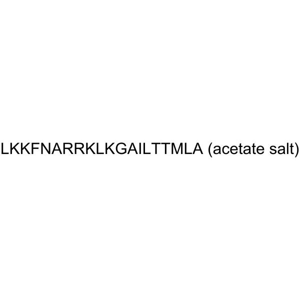 已发现肽290至309是强钙调蛋白拮抗剂,抑制Ca2+/钙调蛋白依赖性蛋白激酶,IC50为52 nM。钙调蛋白结合不会受到氨基末端截断(肽 296-309)或羧基末端方向延伸(肽 294-319)的显着影响。然而,通过缩短肽的羧基末端(肽 290-302)或两端(肽 295-304)可以消除这种活性[1]。