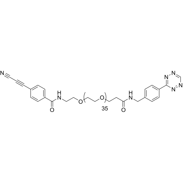口服配方 3: 溶解于 PEG400 (聚乙二醇400) 请根据您的实验动物和给药方式选择适当的溶解配方/方案: 1、请先配制澄清的储备液(如:用DMSO配置50 或 100 mg/mL母液(储备液)); 2、取适量母液,按从左到右的顺序依次添加助溶剂,澄清后再加入下一助溶剂。以 下列配方为例说明 (注意此配方只用于说明,并不一定代表此产品 的实际溶解配方): 10% DMSO → 40% PEG300 → 5% Tween-80 → 45% ddH2O (或 saline); 假设最终工作液的体积为 1 mL, 浓度为5 mg/mL: 取 100 μL 50 mg/mL 的澄清 DMSO 储备液加到 400 μL PEG300 中,混合均匀/澄清;向上述体系中加入50 μL Tween-80,混合均匀/澄清;然后继续加入450 μL ddH2O (或 saline)定容至 1 mL; 3、溶剂前显示的百分比是指该溶剂在最终溶液/工作液中的体积所占比例; 4、 如产品在配制过程中出现沉淀/析出,可通过加热(≤50℃)或超声的方式助溶; 5、为保证最佳实验结果,工作液请现配现用! 6、如不确定怎么将母液配置成体内动物实验的工作液,请查看说明书或联系我们; 7、 以上所有助溶剂都可在 Invivochem.cn网站购买。 |