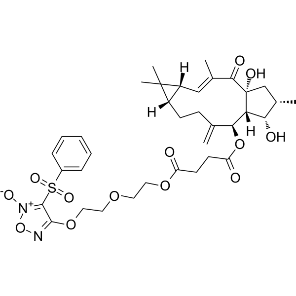 例如,若需制备1 mL的工作液,可将100 μL 50.0 mg/mL 澄清 DMSO 储备液加入到 900 μL 玉米油中并混合均匀。 请根据您的实验动物和给药方式选择适当的溶解配方/方案: 1、请先配制澄清的储备液(如:用DMSO配置50 或 100 mg/mL母液(储备液)); 2、取适量母液,按从左到右的顺序依次添加助溶剂,澄清后再加入下一助溶剂。以 下列配方为例说明 (注意此配方只用于说明,并不一定代表此产品 的实际溶解配方): 10% DMSO → 40% PEG300 → 5% Tween-80 → 45% ddH2O (或 saline); 假设最终工作液的体积为 1 mL, 浓度为5 mg/mL: 取 100 μL 50 mg/mL 的澄清 DMSO 储备液加到 400 μL PEG300 中,混合均匀/澄清;向上述体系中加入50 μL Tween-80,混合均匀/澄清;然后继续加入450 μL ddH2O (或 saline)定容至 1 mL; 3、溶剂前显示的百分比是指该溶剂在最终溶液/工作液中的体积所占比例; 4、 如产品在配制过程中出现沉淀/析出,可通过加热(≤50℃)或超声的方式助溶; 5、为保证最佳实验结果,工作液请现配现用! 6、如不确定怎么将母液配置成体内动物实验的工作液,请查看说明书或联系我们; 7、 以上所有助溶剂都可在 Invivochem.cn网站购买。 |