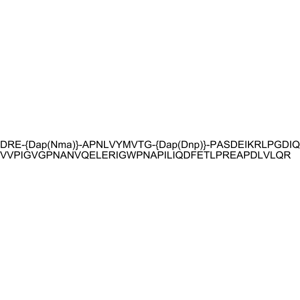 注射用配方1: DMSO : Tween 80: Saline = 10 : 5 : 85 (如: 100 μL DMSO → 50 μL Tween 80 → 850 μL Saline)(IP/IV/IM/SC等) *生理盐水/Saline的制备:将0.9g氯化钠/NaCl溶解在100 mL ddH ₂ O中,得到澄清溶液。 注射用配方 2: DMSO : PEG300 :Tween 80 : Saline = 10 : 40 : 5 : 45 (如: 100 μL DMSO → 400 μL PEG300 → 50 μL Tween 80 → 450 μL Saline) 注射用配方 3: DMSO : Corn oil = 10 : 90 (如: 100 μL DMSO → 900 μL Corn oil) 示例: 以注射用配方 3 (DMSO : Corn oil = 10 : 90) 为例说明, 如果要配制 1 mL 2.5 mg/mL的工作液, 您可以取 100 μL 25 mg/mL 澄清的 DMSO 储备液,加到 900 μL Corn oil/玉米油中, 混合均匀。 View More